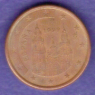 Die 1 Cent Münze zeigt die Kathedrale von Santiago de Compostela