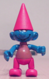 Schlumpf mit braunem Oberteil und blauen Armen, rotes Unterteil Spitze-Rote-Schlumpfmütze
