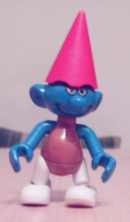 Schlumpf mit braunem Oberteil und blauen Armen, weißes Unterteil Spitze-Rote-Schlumpfmütze