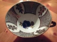 Die Tasse ist 6,5 cm hoch, oben im Durchmesser 10 cm. Die Untertasse hat einen Durchmesser von 15 cm. Kuchen-Frühstücks-o. Abendbrotteller hat einen Durchmesser von 19 cm.