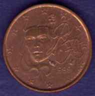 Die 1 Cent Münze zeigt die junge Marianne. Gestaltet wurde das Motiv von der Graveurin Fabienne Courtiade.