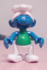 Schlumpf mit grünen Oberteil und blauen Armen, weißes Unterteil Koch - Schlumpfmütze